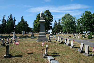 I found this photo in the files and thanks to Bill Hecht, we can see it fairly clearly. I thought it was a gathering of the GAR, and it appears this is so. Below is the photo I took today of the same setting. This is the Lockwood Post GAR monument in the Mt. Pleasant Cemetery.