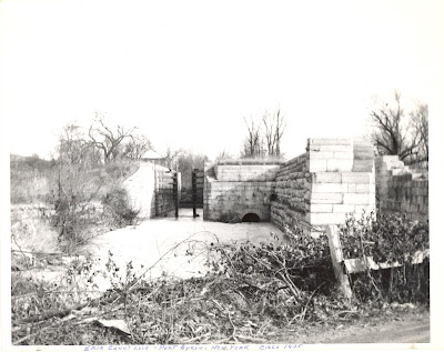 The top photo was taken around 1935, when the canal had been closed for 18 years. Don Gallagher wrote that the photographer was Cliff McComber, but little else. You can see that someone had been picking away at the stones. The skeleton of the lock gate was still there, but the wooden deck and lock tenders house was gone. The bottom photo was taken around 1900, with the lock in its full glory.