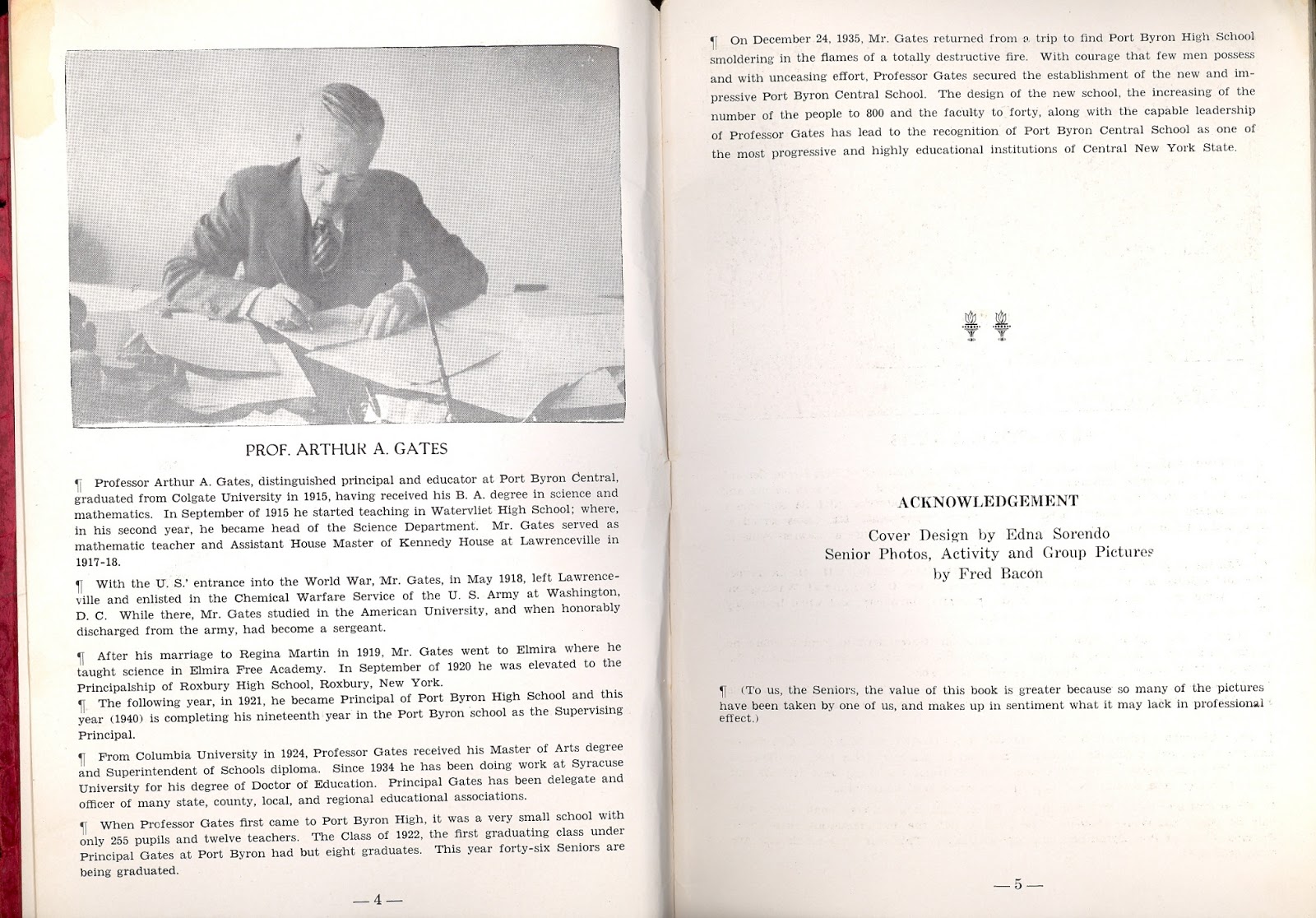 My neighbor was kind enough to drop off this 1940 yearbook she found in her attic. So over time, we will feature pages of it here. As you can read, it was titled “The Phoenix” as the school has risen from the ashes just as the mythical bird did.
