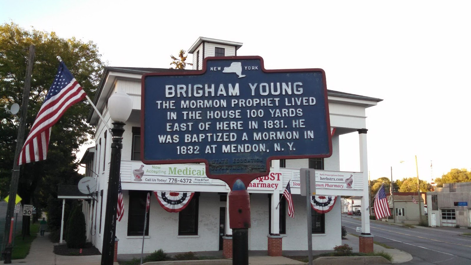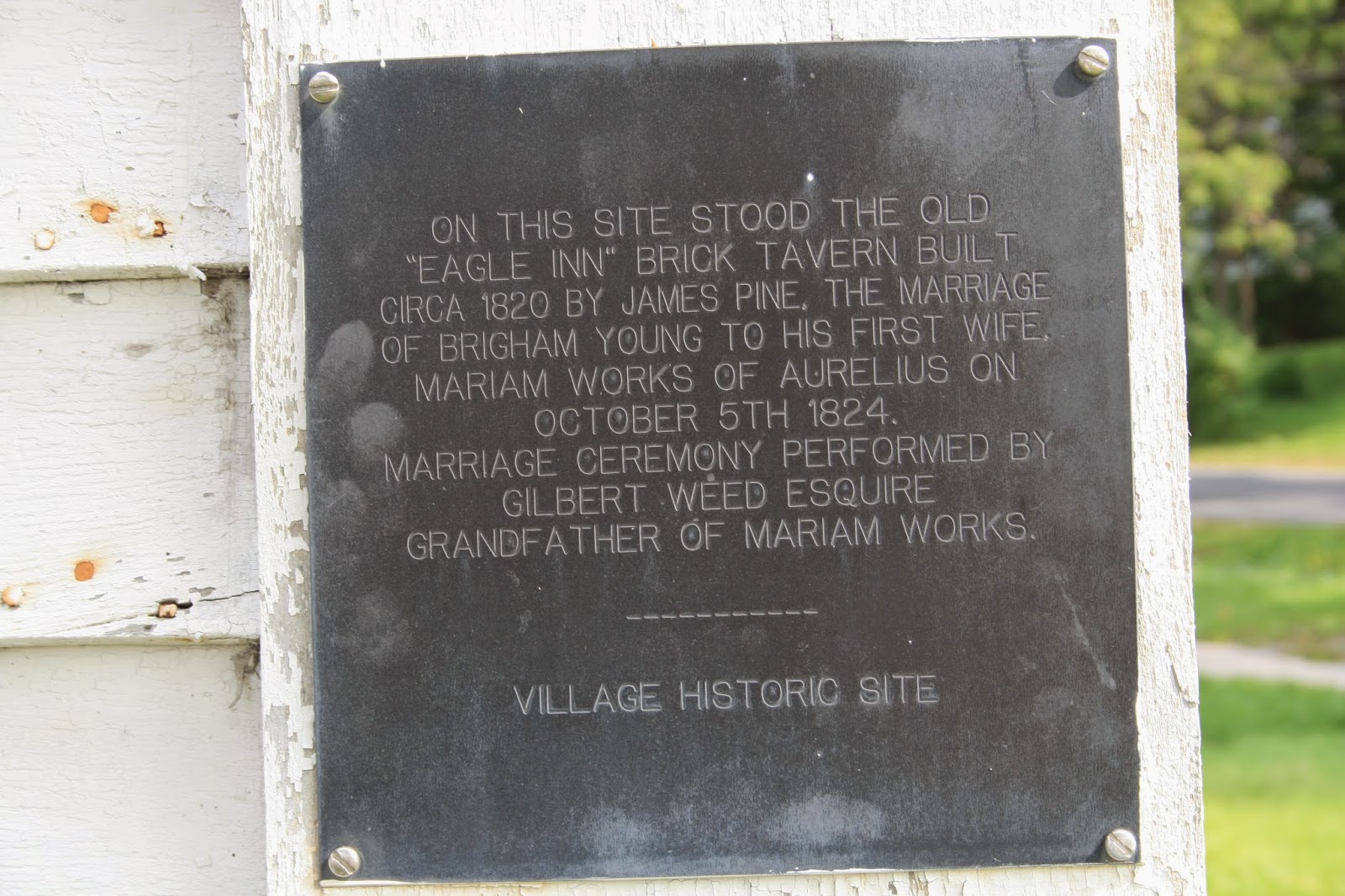 The Society received a request from someone in California asking for a photo of Brigham Young’s house. This person was a direct relative of BY and her (many great) Great Grandmother was born in Port Byron. Quite honestly, for me, there are many other great stories to tell about Port Byron and Mentz, that I really have not taken the time to study BY. I know that he lived here before he became involved with the Mormon faith and that was around 1820-1829. (A newspaper article from 1876 states that BY moved to Port Byron in 1820 and Richard Palmer writes that BY moved to Mendon in 1829. The actual dates seem to bounce around in every article written.) I know that he was a painter and builder, and I know that the Canal Society has a signed receipt from BY for work done at the Milliner Boatyard. In my walks, I had also seen that the house at the corner of Pine and South Street has a plaque that says this is the BY house. So I went and took a photo of the house and then sent it to the relative.